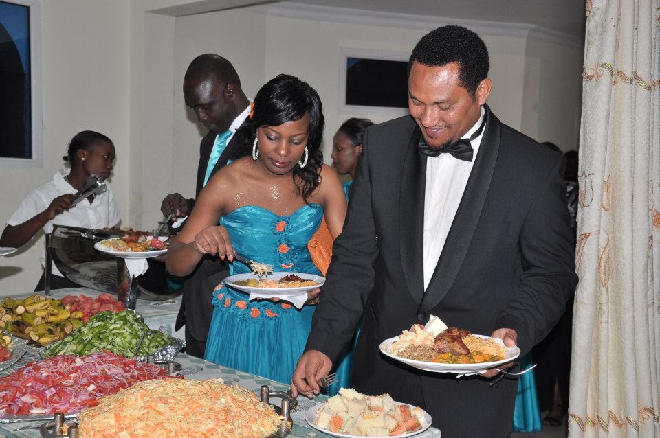Maharusi Denis na Siael wakimtanguliza Mungu kabla ya kuanza kwa sherehe iliyofanyika katika ukumbi wa Green leaf Kimara Korogwe.